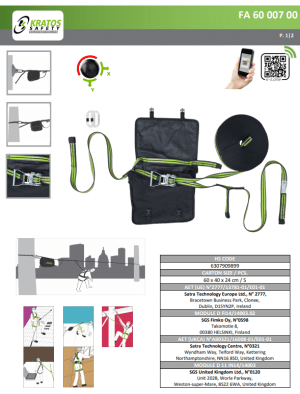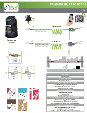 - Conformiteit: Voldoet aan Verordening (EU) 2016/425 bijlage II met gebruikmaking van EN 795:2012 en TS 16415:2013 Type C, en heeft een statische sterkte van 18 kN en een breeksterkte van 23 kN.