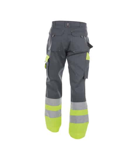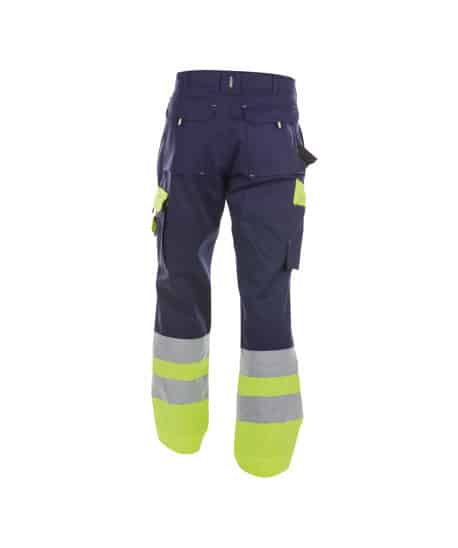 Ga beter zichtbaar aan de slag met deze high vis werkbroek. Dankzij de fluostof en de reflecterende banden kan je rekenen op een gecertificeerde bescherming klasse 1.