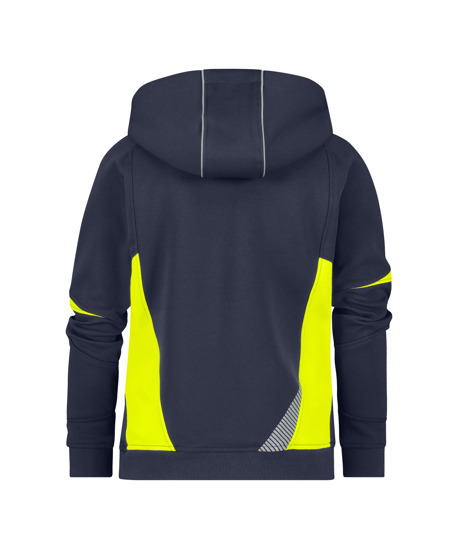 De gebreide mouw- en heupboorden zorgen voor een comfortabele pasvorm en helpen de warmte vast te houden. Dankzij de stiksels in contrastkleur en de gesegmenteerde reflecterende details ziet deze hoodie er niet alleen stijlvol uit, maar biedt hij ook een hoge mate van zichtbaarheid, zelfs bij weinig licht.