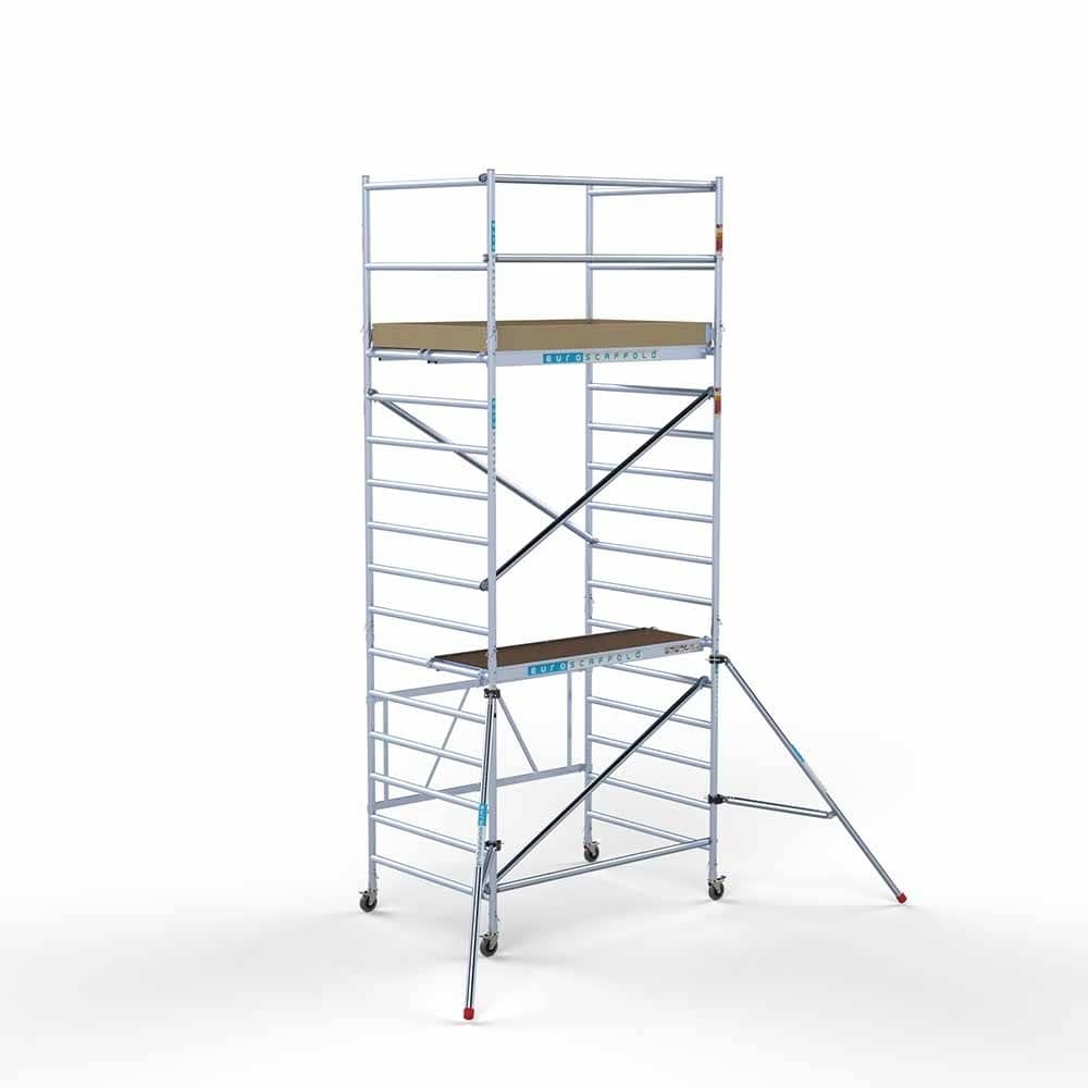 Deze combi kamersteiger is 135cm breed, 190cm lang en heeft een werkhoogte van maximaal 5,7 meter. Deze brede steiger van Euroscaffold heeft een groot werkoppervlak met voldoende ruimte voor al uw gereedschap. De steiger van hoogwaardig aluminium is licht en wendbaar en kan binnen een paar minuten worden op- of afgebouwd. Indien de kamersteiger vrijstaand wordt gebruikt, zijn voor extra veiligheid stabilisatoren aan te raden. De combi kamersteiger is geschikt voor binnen en buiten, en voor zowel doe-het-zelvers als professionele klussers. De steiger voldoet aan de geldende veiligheidseisen.
