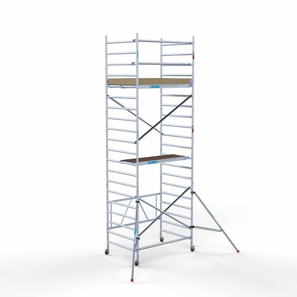 Deze combi kamersteiger is 135cm breed, 190cm lang en heeft een werkhoogte van maximaal 6,5 meter. Deze brede steiger van Euroscaffold heeft een groot werkoppervlak met voldoende ruimte voor al uw gereedschap. De steiger van hoogwaardig aluminium is licht en wendbaar en kan binnen een paar minuten worden op- of afgebouwd. Indien de kamersteiger vrijstaand wordt gebruikt, zijn voor extra veiligheid stabilisatoren aan te raden. De combi kamersteiger is geschikt voor binnen en buiten, en voor zowel doe-het-zelvers als professionele klussers. De steiger voldoet aan de geldende veiligheidseisen.