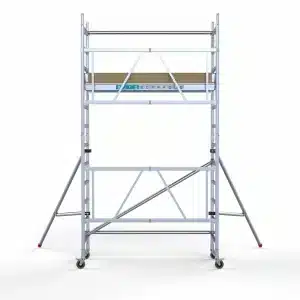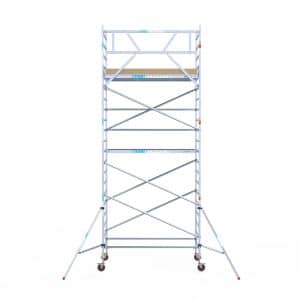 Met een breedte van 75 cm en een lengte van 190 cm is deze steiger makkelijk te manoeuvreren in smalle ruimtes. De geremde zwenkwielen maken het eenvoudig om de steiger te verplaatsen en op zijn plek te houden.