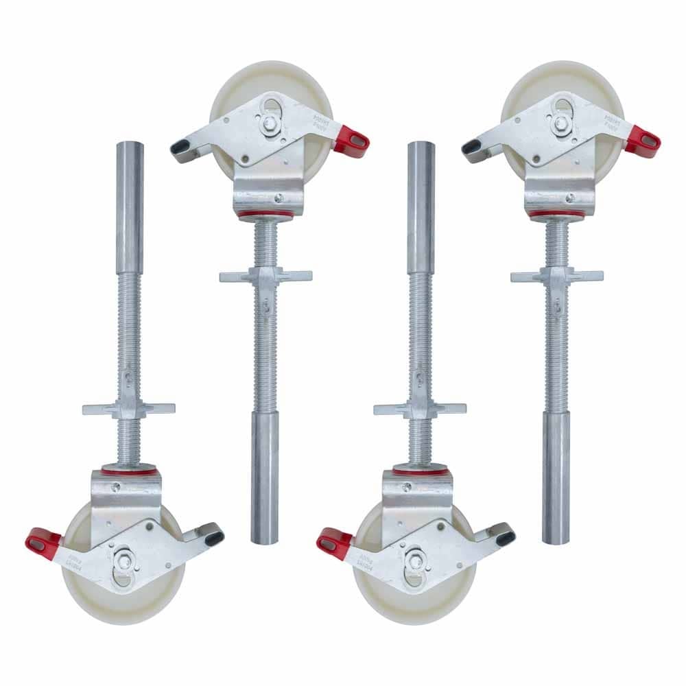 - Duurzaam en veilig: Met een maximale belasting van 300 kg biedt dit steigerwiel een solide ondersteuning voor uw steigerprojecten. De rubberen wielen laten geen sporen achter op vloeren en zijn geschikt voor zowel binnen- als buitengebruik. TUV-certificering en naleving van de EN 1004 veiligheidseisen garanderen optimale veiligheid.