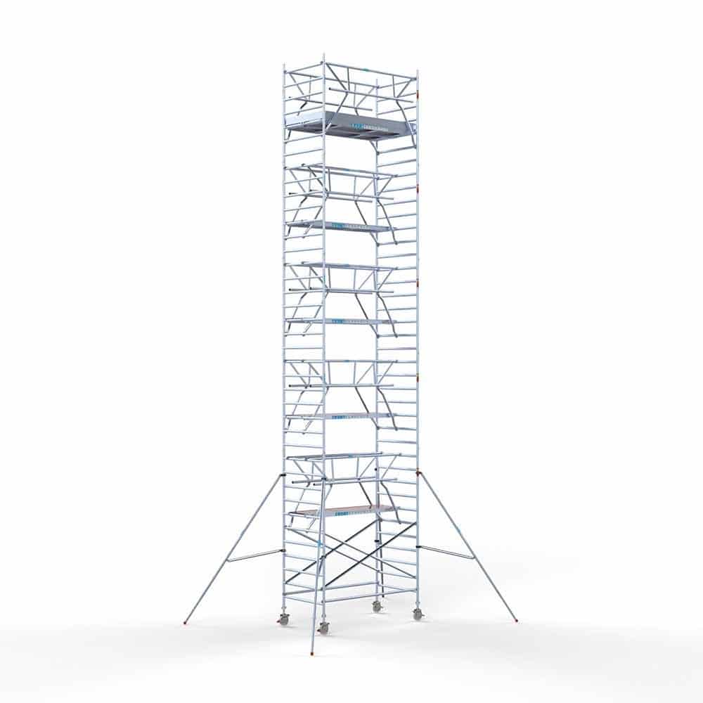 De steiger staat bekend om zijn gebruiksgemak en lange levensduur, heeft een breedte van 135 cm en een platform lengte van 250 cm. De werkhoogte van deze steiger is 12,2 meter.