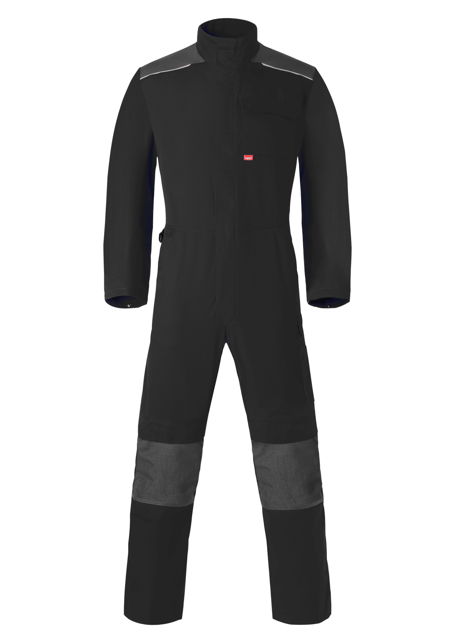 Verdekte ritssluiting met verdekte drukknopen, dijbeenzak met verdekte drukknoopsluiting, duimstokzak met rolmaatzakje, Cordura® kniezakken met klittenband afsluitbaar, 1 achterzak met verdekte drukknoopsluiting, rugplooien, 1 borstzak met verdekte drukknoopsluiting, rugelastiek, reflecterende piping, ingezette voorzakken, D-ring, extra inzet bij kruis ter voorkoming van uitscheuring, verdekte drukkers aan de mouw.
