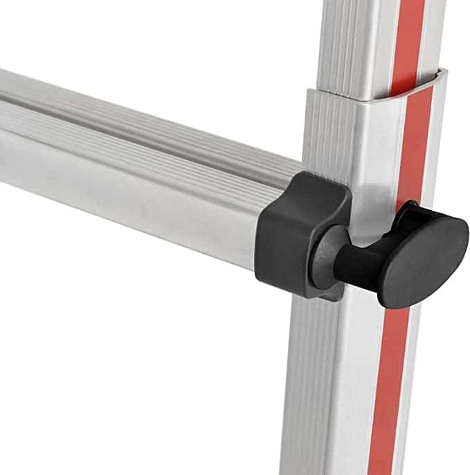 Met een hoogteverstelling van 25 cm per keer biedt deze ladder een ongeëvenaarde flexibiliteit voor elke taak. Het eenvoudig te bedienen hevelscharnier en de massieve blokkeerelementen met stalen kern zorgen ervoor dat je snel en veilig de gewenste hoogte bereikt.