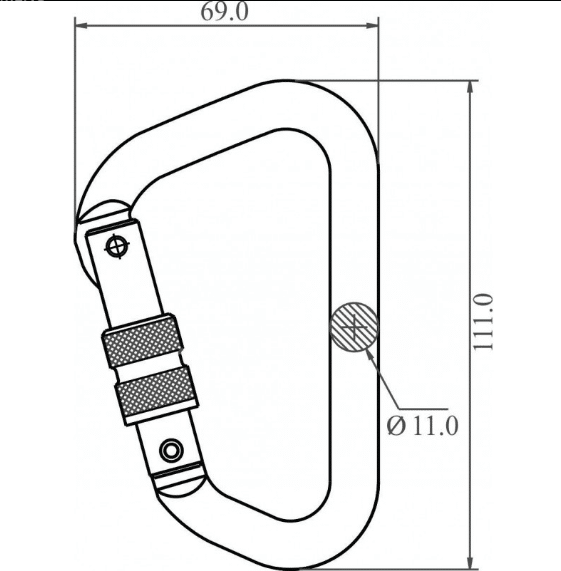 - Ruime Opening van 22,5 mm: Deze karabijnhaak biedt een ruime opening van 22,5 mm, waardoor het gemakkelijk is om verschillende bevestigingspunten en accessoires te verbinden.