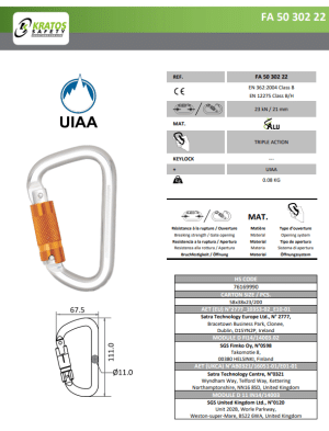 - Voldoet aan EN362:2004 – klasse B: Deze karabijnhaak voldoet aan de strenge veiligheidsnormen volgens EN362:2004 – klasse B, wat de kwaliteit en betrouwbaarheid ervan onderstreept.