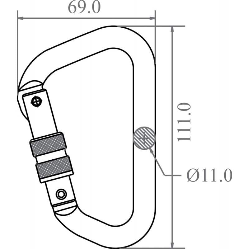 - Schroefvergrendeling met keylock: De karabijnhaak is voorzien van een schroefvergrendeling met keylock, wat zorgt voor extra veiligheid en betrouwbaarheid, vooral tijdens incidenteel gebruik.
