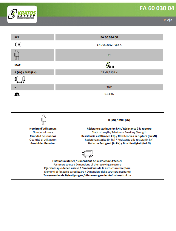 - Veelzijdig U-profiel: Het U-profiel van het ankerpunt maakt installatie mogelijk op verschillende soorten constructies, waardoor het flexibel en veelzijdig inzetbaar is.
