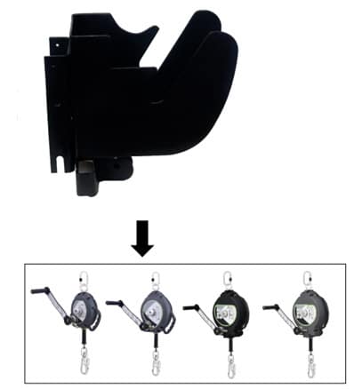 Plaat om een reddingslier van op een driepoot statief met dubbele katrol te bevestigen.