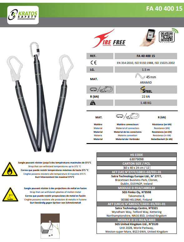 Of het nu gaat om laswerkzaamheden op scheepswerven, in de staalindustrie of andere hoogtegerelateerde toepassingen, de Kratos Firefree Y-lijn biedt de betrouwbaarheid en hittebestendigheid die nodig zijn om veilig en efficiënt te werken op hoogte. Voeg deze hoogwaardige veiligheidsuitrusting vandaag nog toe aan je arsenaal en werk met vertrouwen op hoogte.