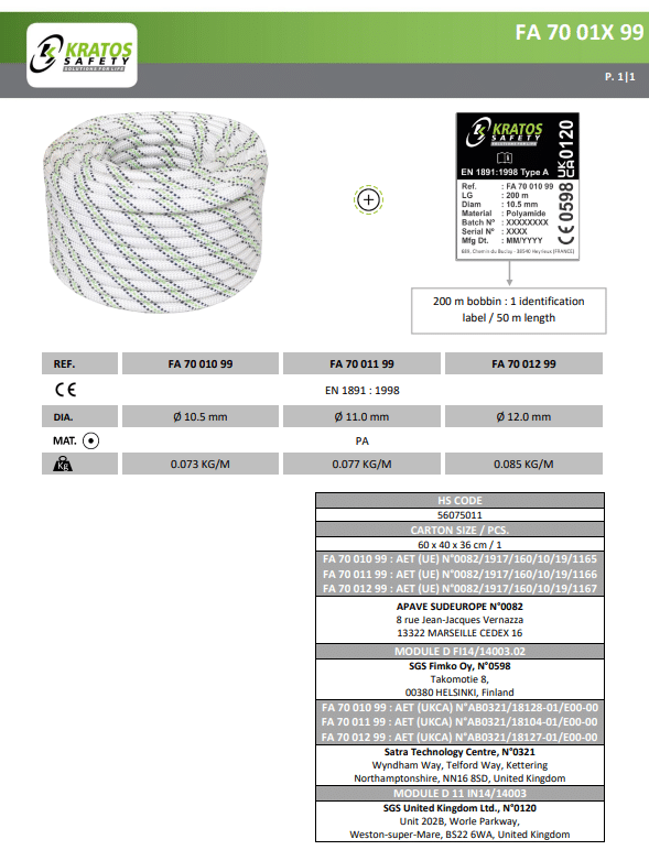Kratos gevlochten touw FA7001099 / FA7001199 / FA7001299