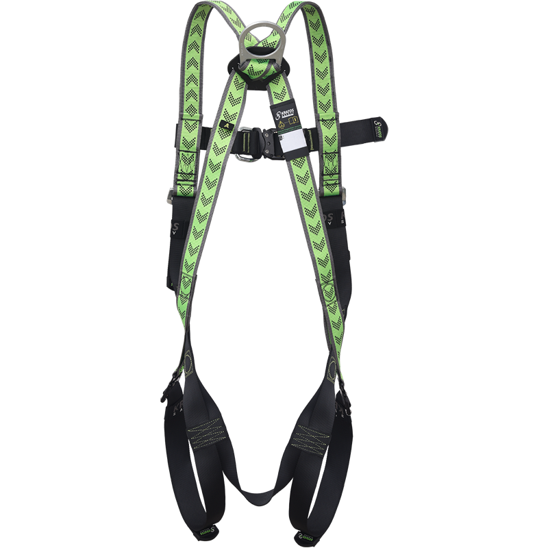 - Bevestigingspunten: Uitgerust met 1 bevestigingspunt op de borst en 1 op de rug, waardoor het harnas geschikt is voor verschillende werkposities en -omstandigheden.