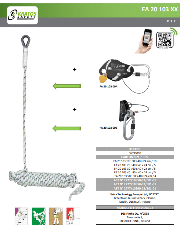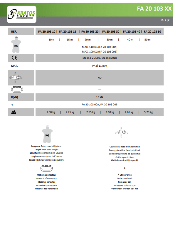 - Normconformiteit: Deze lijn voldoet aan de norm EN353-2:2002 / EN358, wat betekent dat het voldoet aan de hoogste veiligheidsnormen en geschikt is voor professioneel gebruik.
