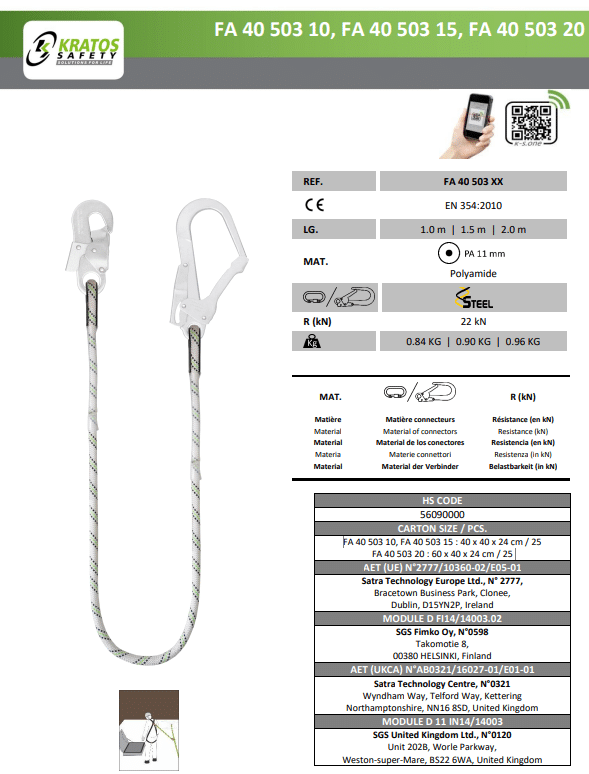 - Voldoet aan de norm: Deze lijn voldoet aan de strenge norm EN354:2010 voor valbescherming, wat garant staat voor de hoogste kwaliteit en veiligheid.