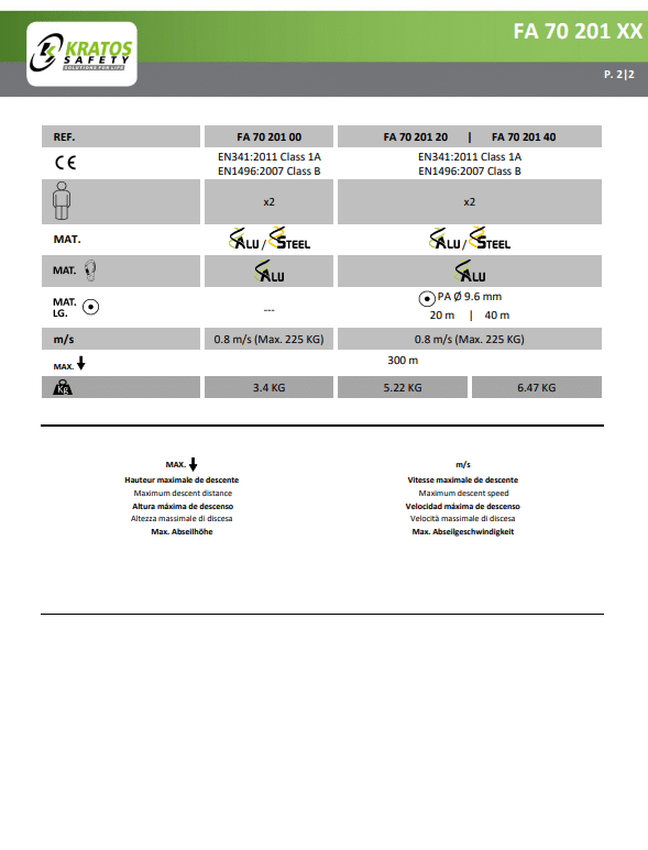 - Veelzijdigheid: De Kratos LIFT RES-Q kan worden gebruikt met een elektrische schroevendraaier voor snelle evacuaties, zelfs op grote hoogten. Het is ideaal voor hoge liften en biedt een daalsnelheid van 0,8 m per seconde, ongeacht het gewicht (binnen de limiet van 225 kg).