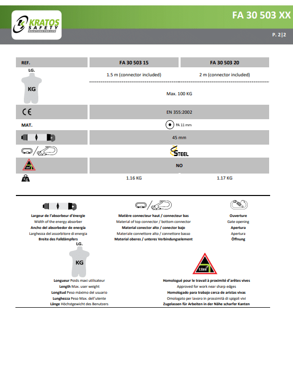 Op zoek naar een betrouwbare leeflijn voor werkzaamheden op hoogte? Ontdek de Kratos Polyamide Leeflijn met Haken 1,5m – FA3050315, verkrijgbaar bij RSN Safety. Deze hoogwaardige leeflijn biedt optimale bescherming en stabiliteit, zodat werknemers veilig kunnen werken op hoogte.