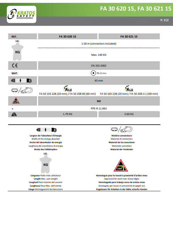 Houd uw team veilig en beschermd tijdens werkzaamheden op hoogte met de Kratos Polyamide Y-Lijn 1,5m – FA3062115. Bestel vandaag nog bij RSN Safety en zorg voor een veilige werkomgeving voor iedereen. Vergeet niet om regelmatig het bordje op het etiket te controleren – “NIET OK” betekent dat de energie-absorber een val heeft gestopt en moet worden vervangen voor verdere veiligheid.