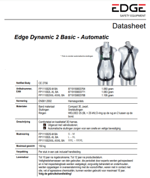 - Veiligheidsnormen: Voldoet aan de EN 358: 1999 norm, wat aantoont dat deze gordel is getest en goedgekeurd volgens de hoogste veiligheidsnormen.