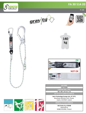 - Normconformiteit: De Kratos positioneringslijn Y-lijn voldoet aan de norm EN355:2002, wat aantoont dat het voldoet aan strenge veiligheidsnormen en geschikt is voor professioneel gebruik op hoogte.