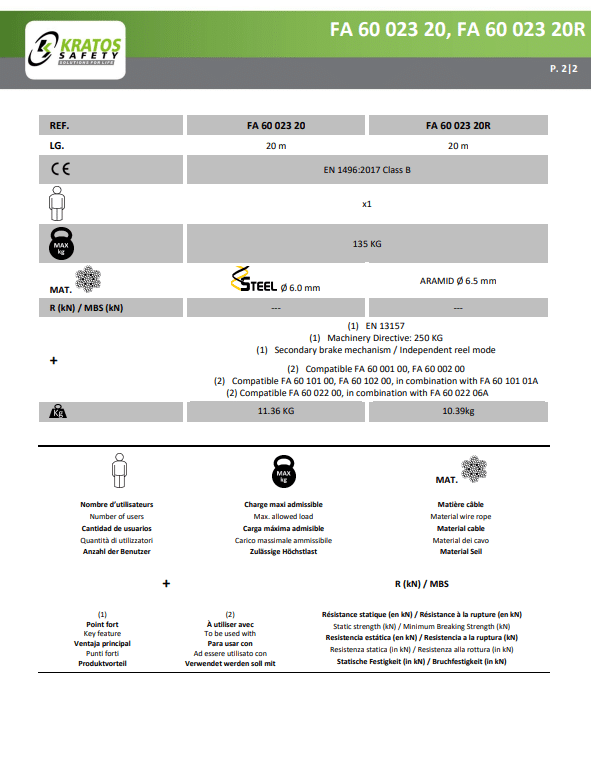 - Lengte van 20 meter: Met een kabel van 20 meter biedt deze lier voldoende bereik voor diverse reddingssituaties en werkzaamheden in kleine ruimtes.