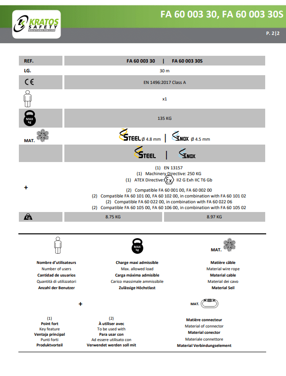 - Lengte van 30 meter: Met een kabel van 30 meter biedt deze lier een ruim bereik en flexibiliteit voor verschillende reddingssituaties in kleine ruimtes.