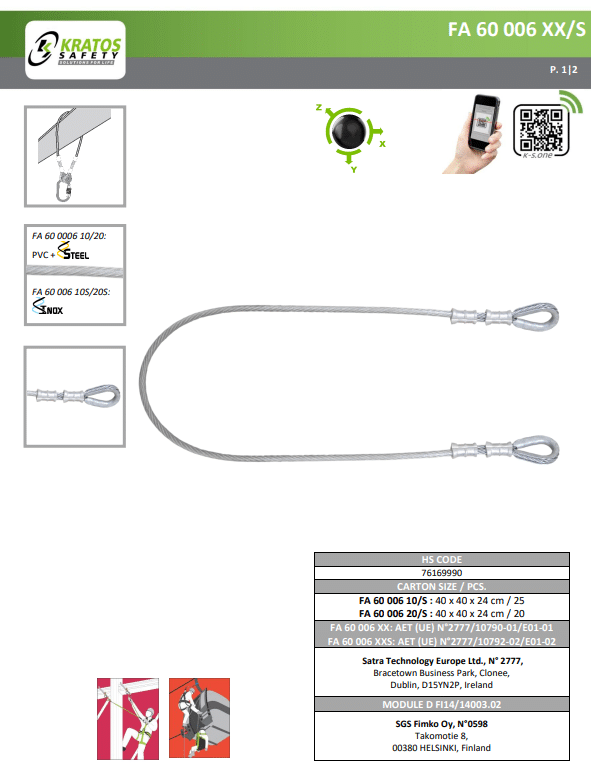 Ontdek de Kratos RVS Ankerstrop 1m – FA6000610S, de ideale oplossing voor situaties waarin scherpe hoeken een uitdaging vormen voor traditionele ankerpunten. Deze geavanceerde ankerstrop biedt een hoog niveau van bescherming en voldoet aan de volgende specificaties: