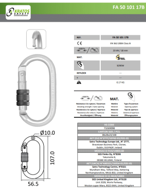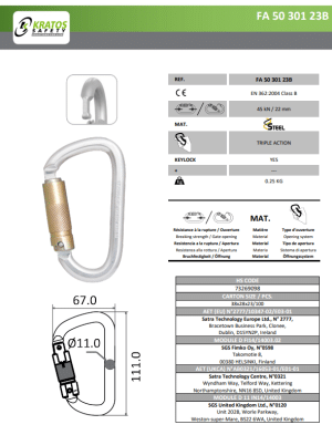- Voldoet aan EN362:2004 – klasse B: Voldoet aan de strenge veiligheidsnormen voor persoonlijke beschermingsmiddelen tegen vallen, wat garant staat voor betrouwbaarheid en kwaliteit.