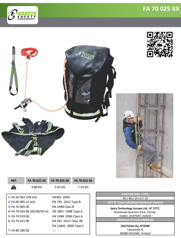 Met de Kratos universele evacuatie set – FA7002520, bent u voorbereid op noodsituaties op hoogte met een betrouwbare en effectieve oplossing.