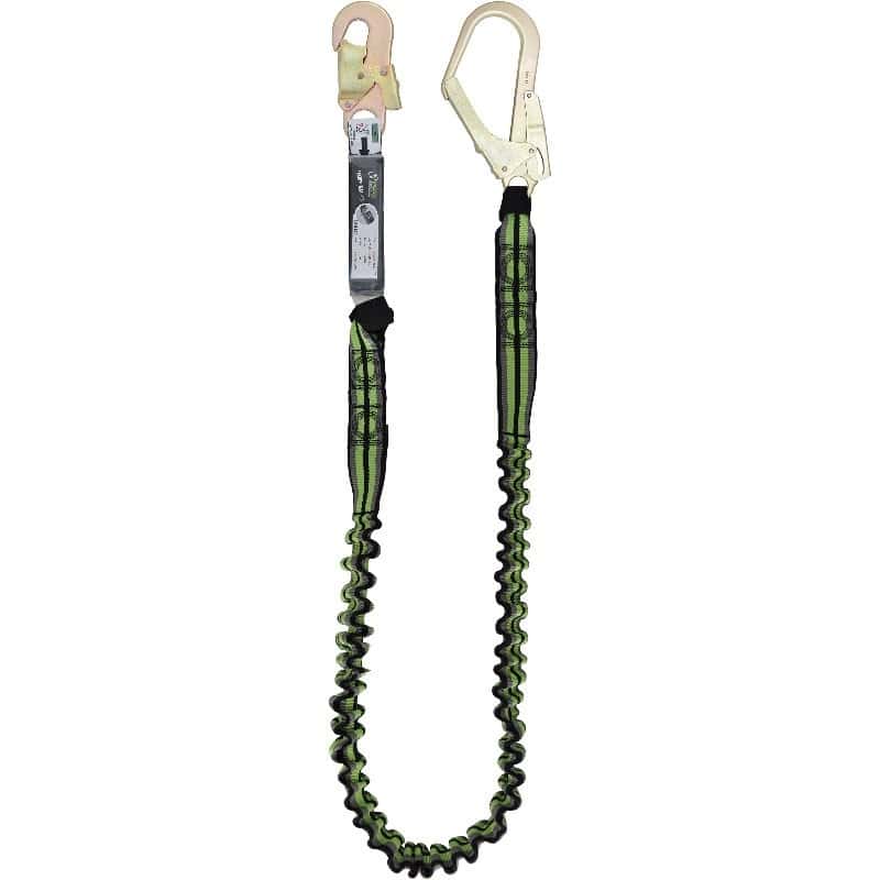 Voorzien van een elastische lijn met een steigerhaak en een snel sluithaak.