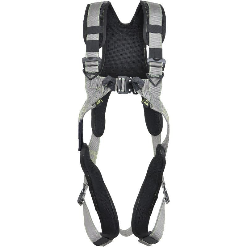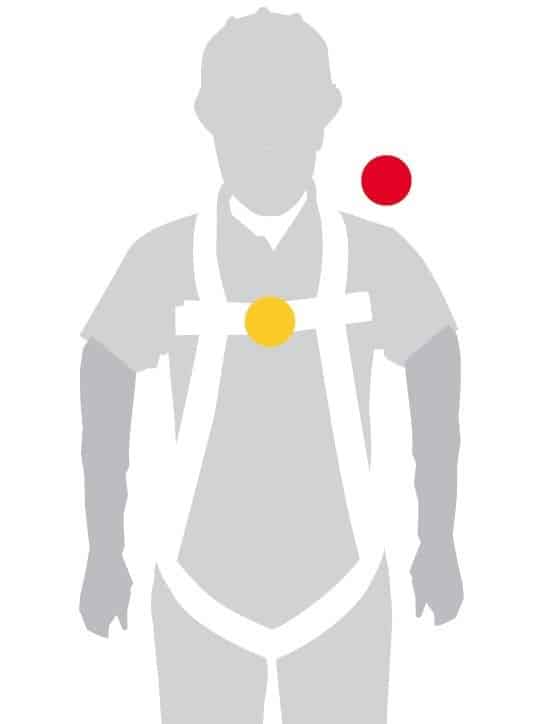– Dit harnas is voorzien van 2 bevestigingspunten, één op de rug, en één op de borst