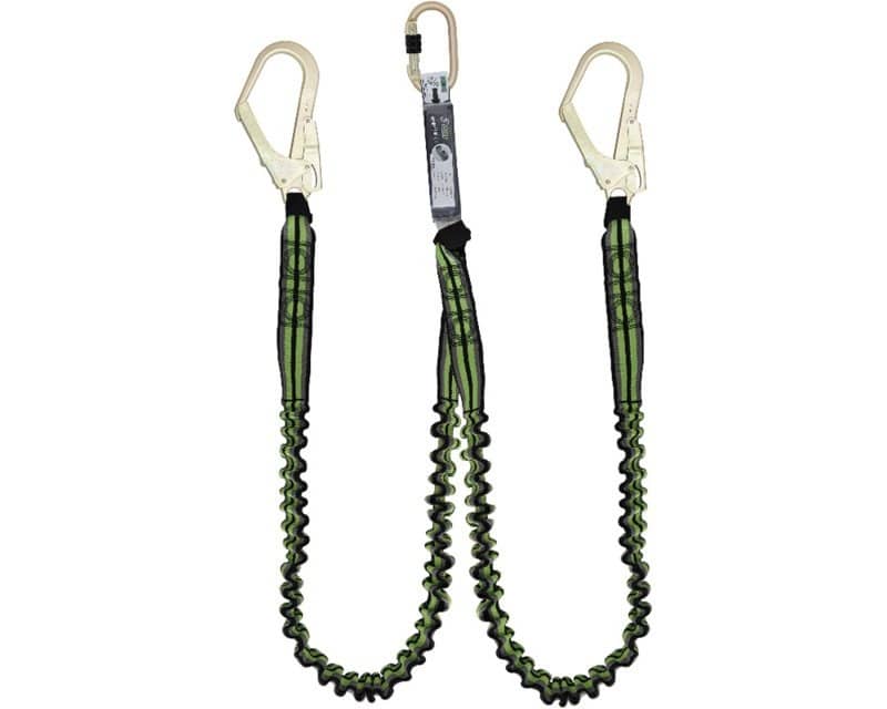 Voorzien van een dubbele elastische lijn met een steigerhaak en een snel sluithaak.