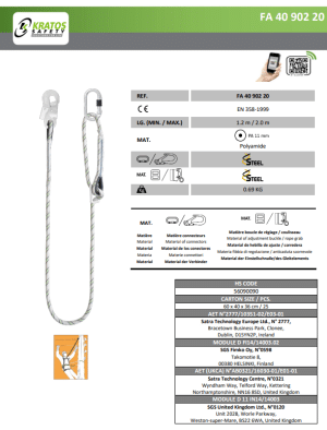 – Voorzien van een stalen karabijnhaak en een stalen dubbelwerkende karabijnhaak.