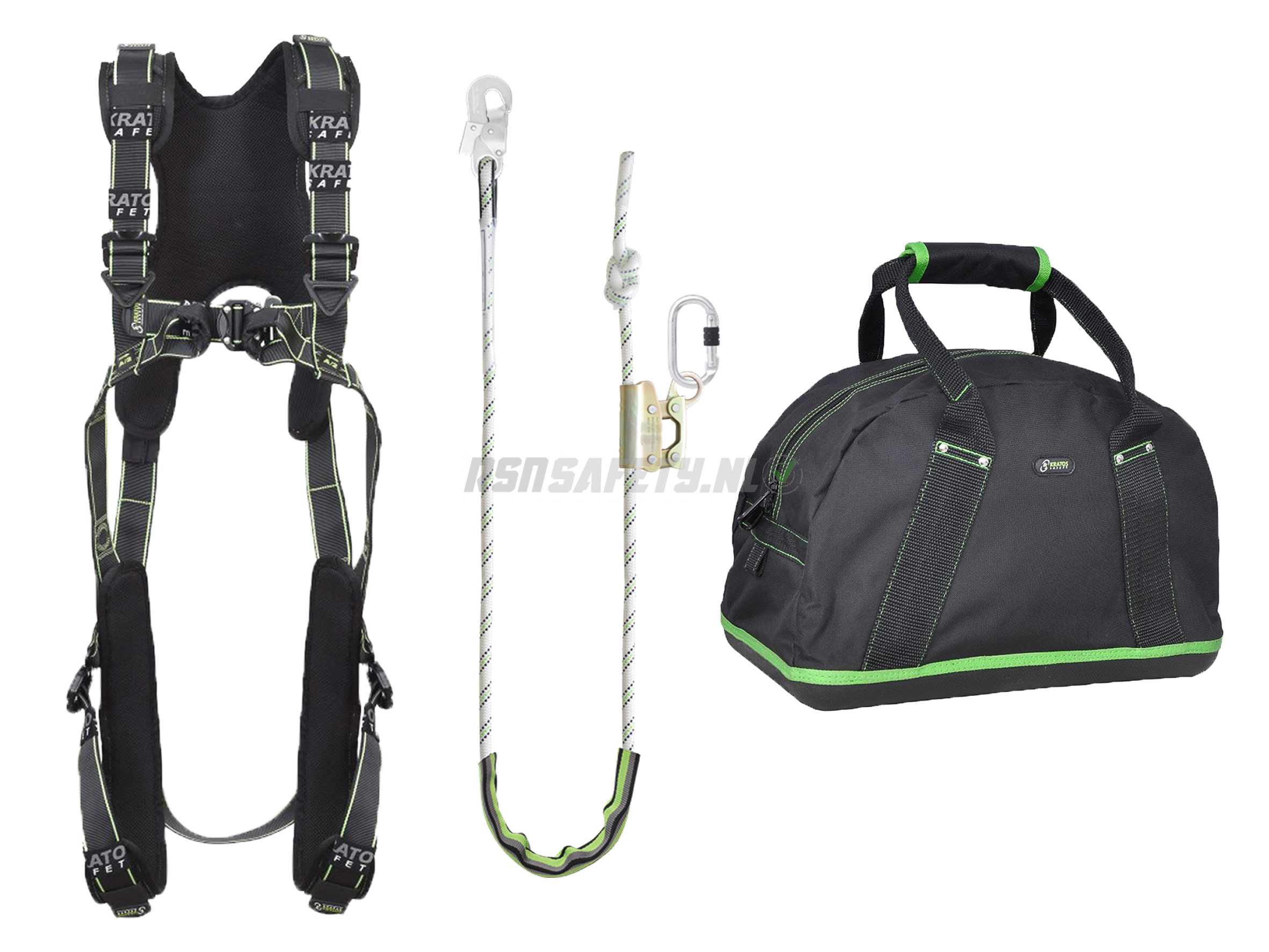 Deze valbeveiliging set van Kratos is geschikt voor gebruik van in hoogwerker of in de steigerbouw.