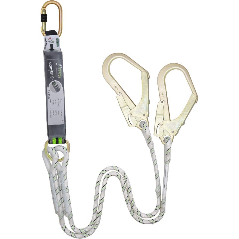 Voorzien van een elastische dubbele leeflijn met 2 steigerhaken en een karabijnhaak.