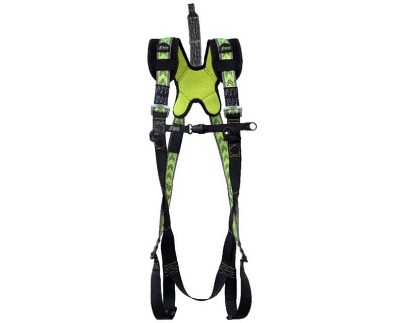 – Dit harnas is voorzien van 2 bevestigingspunten, één op de rug, en één op de borst
