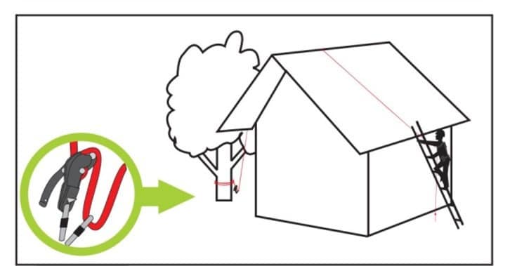 Anti-val systeem op gevlochten touw met ingebouwd afdaalmechanisme op het ankerpunt waardoor