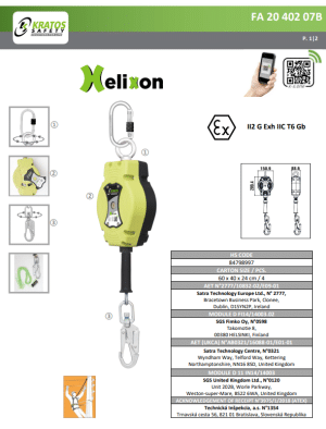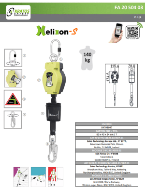 Dit valstopblok is voorzien van een wartel en koppelstuk (FA5010117) en een connector met valindicator (FA5020320) voor eenvoudige bevestiging aan harnassen of ankerpunten. Het beschikt over een automatisch terugtreksysteem en een remsysteem dat de impact van een val kan verminderen tot minder dan 6 kN, wat de veiligheid van de gebruiker waarborgt.