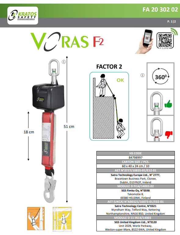 Het Kratos valstopblok 2,5m band – FA2030002 voldoet aan de strenge norm EN360:2002, wat betekent dat het uitvoerig getest en goedgekeurd is voor gebruik op hoogtes. Vertrouw op dit valstopblok voor veiligheid en gemoedsrust tijdens uw werkzaamheden op hoogte.