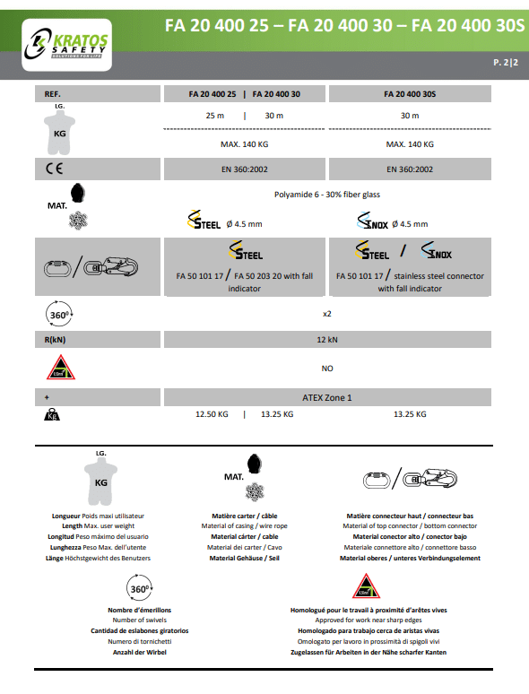 Kratos valstopblok 25m staalkabel FA2040025