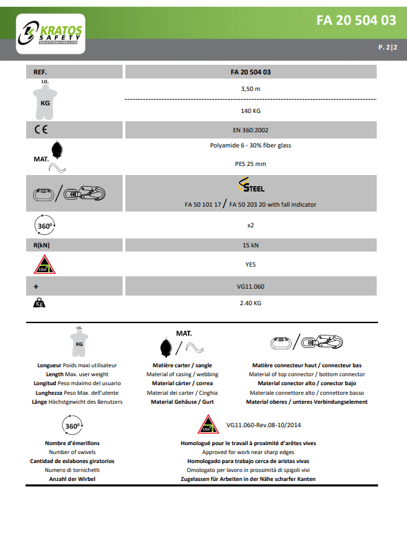 Ontdek het Kratos valstopblok 3,5m band voor verticaal gebruik – FA2050403B, verkrijgbaar bij RSN Safety. Dit zelf oprollende valstopblok is een essentieel stuk veiligheidsuitrusting voor werk op hoogte, ontworpen om gebruikers te beschermen tegen valongevallen.