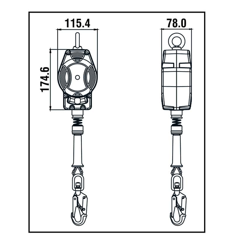 - Externe Energie-Absorber: Wordt geleverd met een externe energie-absorber aan het uiteinde van de kabel om de impact van een val te absorberen en de krachten op de gebruiker te verminderen.