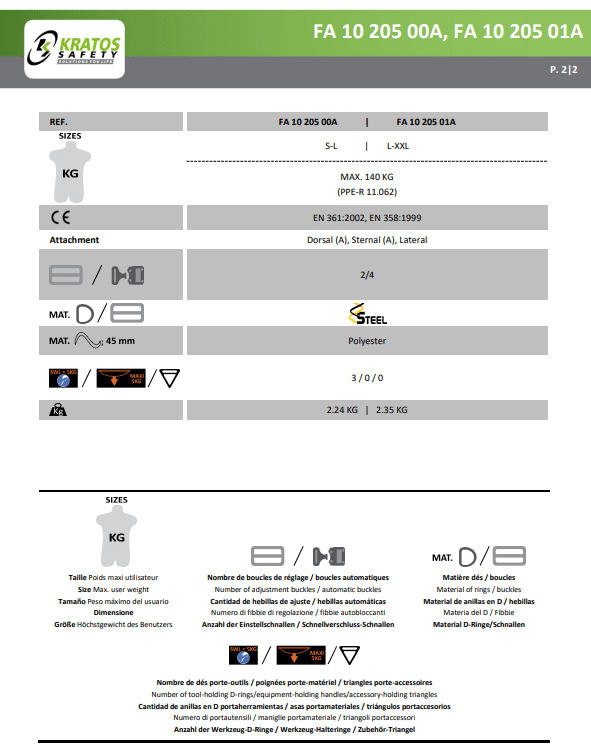 - Voldoet aan EN 361: 2002 / EN 358: 1999: Voldoet aan de strengste Europese veiligheidsnormen, wat de kwaliteit en betrouwbaarheid garandeert.