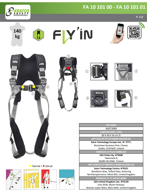 Kies voor comfort en veiligheid met het Kratos veiligheidsharnas luxe Fly’in 1 – FA1010100, verkrijgbaar bij RSN Safety.