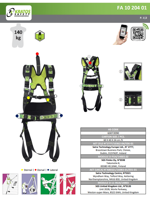 Waarom Kiezen voor Kratos bij RSN Safety? RSN Safety staat bekend om zijn toewijding aan het leveren van hoogwaardige veiligheidsuitrustingen. Het Kratos Valbeveiliging Harnas FA1020400A is een bewijs van die toewijding, met uitmuntendheid in ontwerp, constructie en prestaties. Het voldoet aan strenge veiligheidsnormen en biedt professionals de gemoedsrust die ze nodig hebben bij werkzaamheden op hoogte.