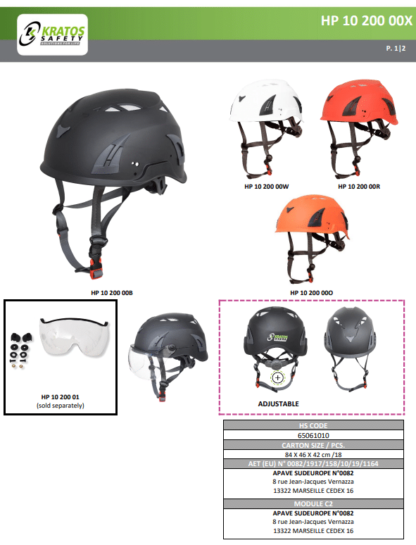- Robuuste constructie: De helm is voorzien van een thermogevormde pet en heeft een stevige constructie om optimale bescherming te bieden tijdens gevaarlijke activiteiten op hoogte. Hij voldoet aan de norm EN12492: 2012 voor gegarandeerde veiligheid.