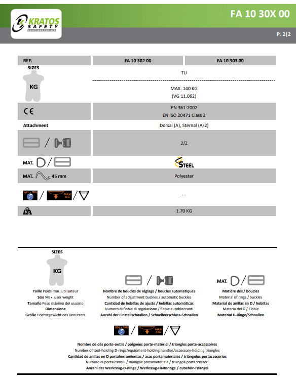 - Maximale draagvermogen van 140 kg: Het vest is ontworpen om gebruikers met een gewicht tot 140 kg te ondersteunen, waardoor een veilige werkomgeving op hoogte wordt gegarandeerd.