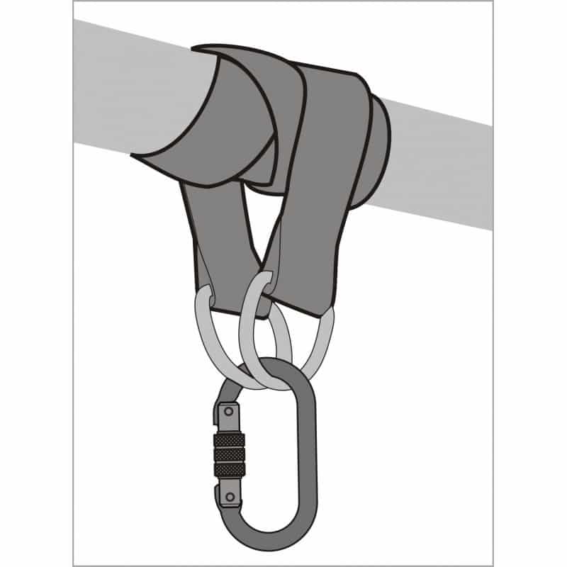 - Stalen ringen: Voorzien van stalen ringen aan beide uiteinden voor een veilige bevestiging aan het harnas en het ankerpunt, waardoor een stevige en betrouwbare verbinding wordt gegarandeerd.