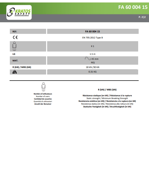 - Normconformiteit: Voldoet aan de strenge normen van EN795:2012 Type B, wat garandeert dat het voldoet aan de hoogste veiligheidsnormen en kwaliteitseisen.